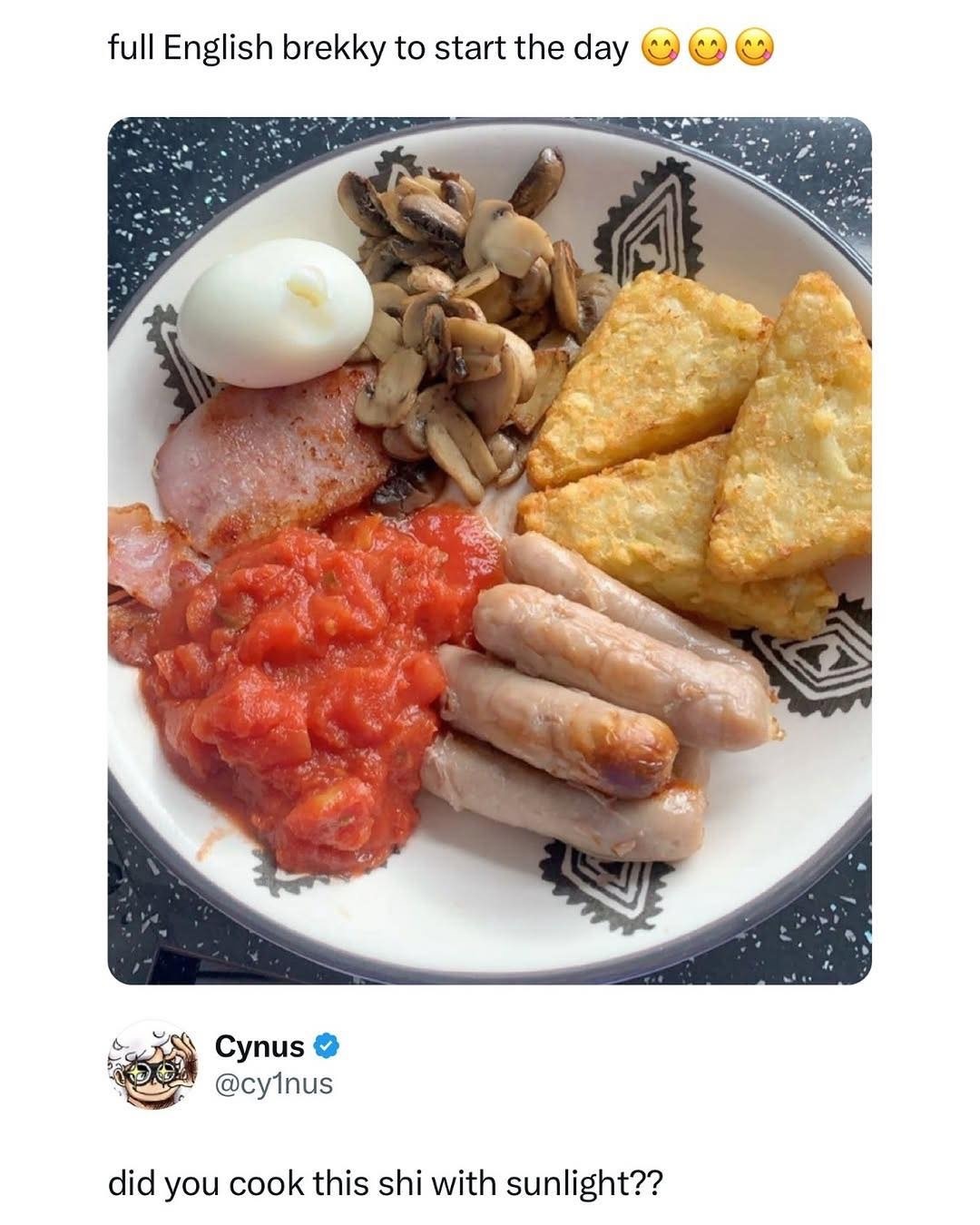 minus-squareHarneyToker@lemmy.worldlinkfedilinkarrow-up4·17 days agoI definitely like my hashbrowns low and slow, not dry and crispy when I make them in the air fryer, and they come out like that color. Lightly crisped on the outside and fully cooked on the inside. They are just potatoes after all. Everything else on that plate looks like ass.