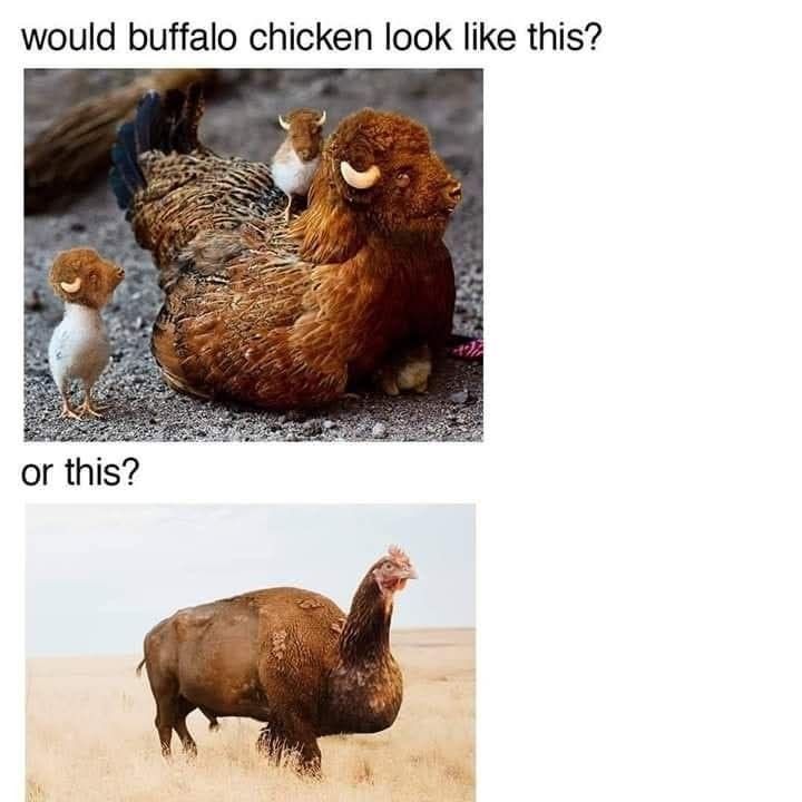 Gotta be the first one. Because as we all know, buffalos have wild wings! Thats why they call it buffalo wild wings! The second one doesn’t have ANY wings, much less wild ones!
