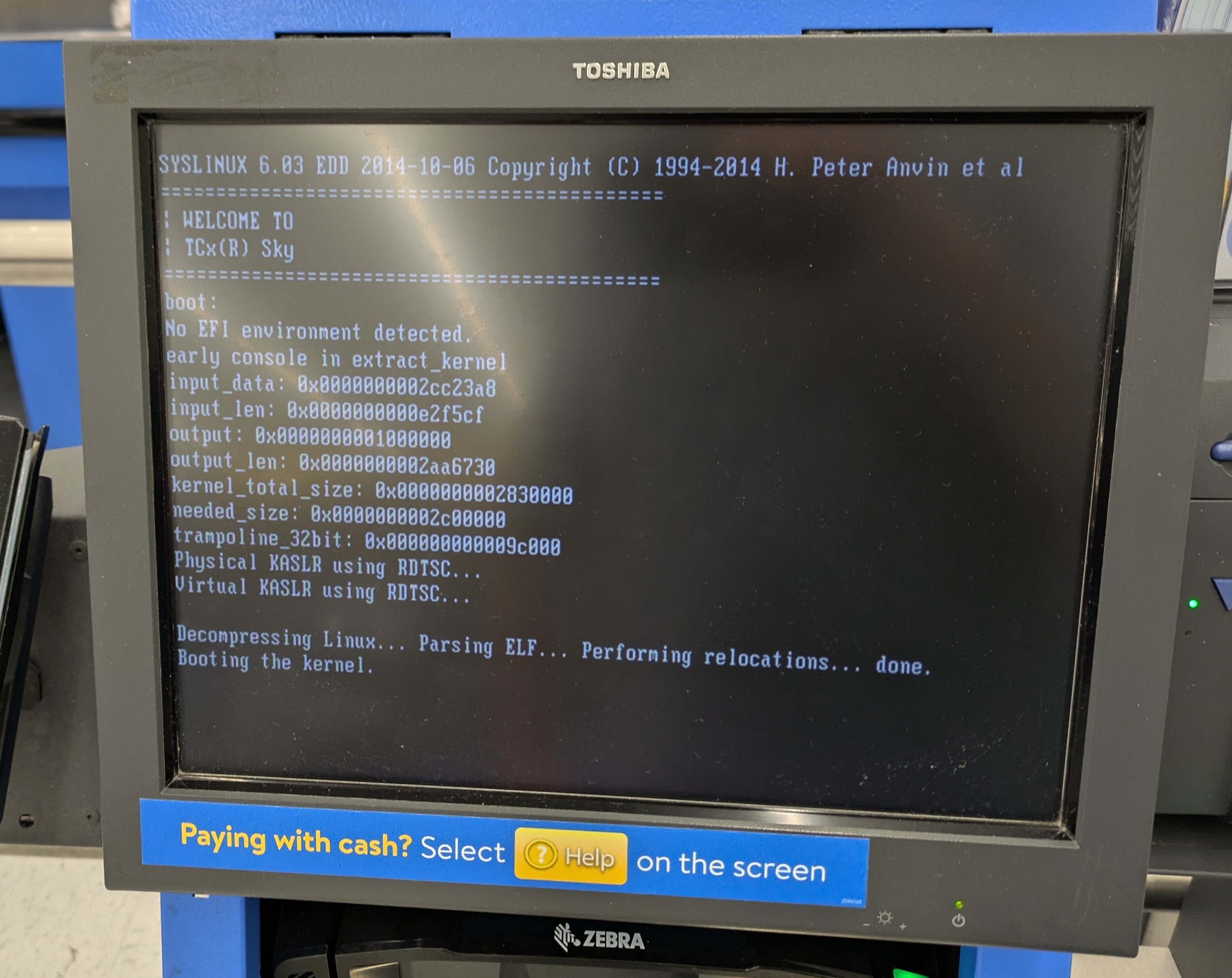 arrow-up1246arrow-down1imagethe self checkout machines at Walmart need a reboot. syslinux 6.03lemmy.caskiguy0123@lemmy.ca to Linux@lemmy.ml · 13 days agomessage-square29fedilink