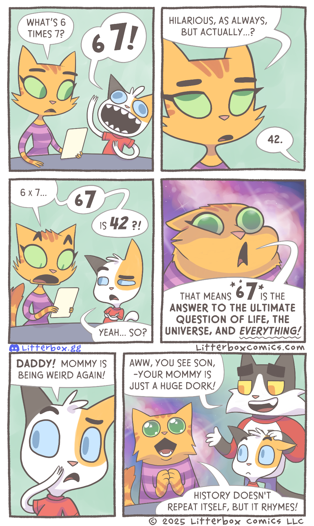 cat mum (making faces): that means 6 7 is the answer to the ultimate question of life, the universe and everything!