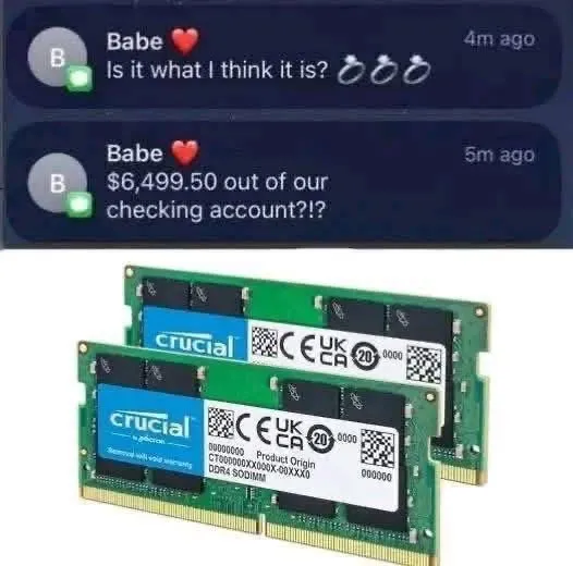 I hope nobody is spending money on crucial right now after Micron’s dumbass decision to trash the brand. Don’t let them forget it when they try to bring it back after the AI bubble bursts either
