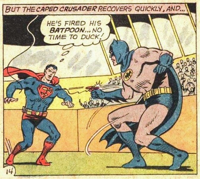 Also it’s to make sure he can hit superman. Superman is faster than a speeding bullet, but a batpoon isn’t a bullet. Checkmate